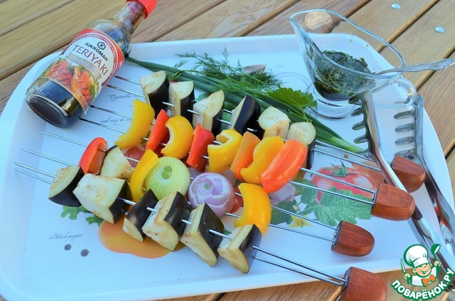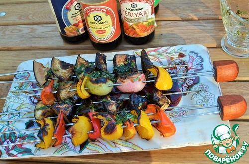 Овощи на мангале - это оригинально и красиво на столе. А с соевым соусом еще и вкусно и пикантно. Да и времени много не займет, приготовить можно параллельно с шашлыком. Уверяю Вас - поднос опустеет моментально. Угощайтесь.