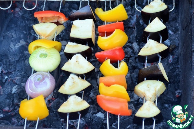 Печь овощи на седых углях.