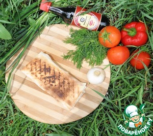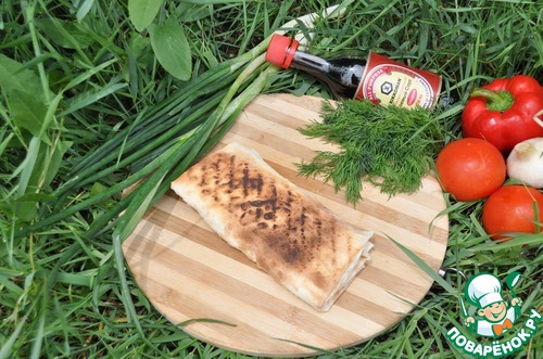 На пикнике подсушиваем лаваш на решётке мангала на углях по 1 минуте с каждой стороны.