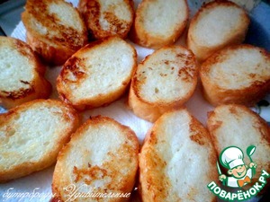 Батон купить заранее и дать ему день-два зачерстветь, не открывая пакета. Затем нарезать батон толщиной по 1,5 см.