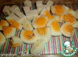 Сырок и яйца нарезать кусочками.