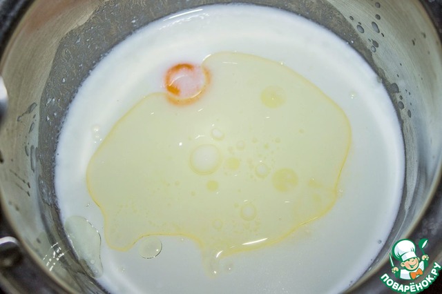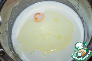 У яйца отделяем желток и смешиваем его с кефиром, маслом и ванилином до однородности.