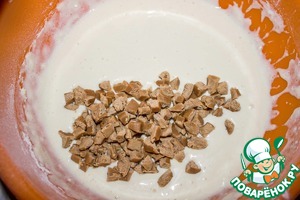 В тесто добавляем порубленные ириски. Перемешиваем.