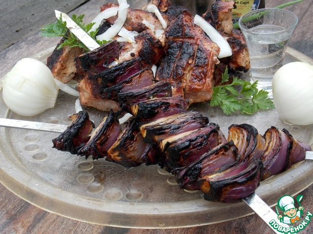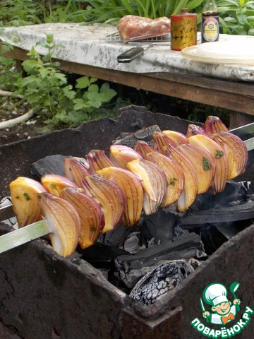 Прочитала когда то интересный совет, так и родился этот рецепт. Люблю я лук который запекался с шашлыком, а его обычно бывает мало. Всех любителей шашлычного лука приглашаю.