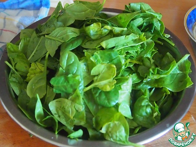 Шесть яиц сварить вкрутую, остудить и очистить. Шпинат помыть, обсушить и крупно порезать.