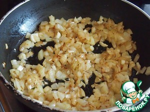 Лук нарезать и поджарить на масле, добавить порезанный чеснок и, помешивая, поджарить его одну минуту.