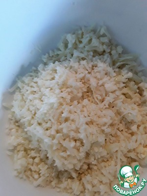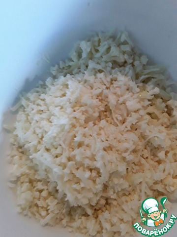 Цветную капусту разбираем на соцветия, моем и натираем на крупной терке.