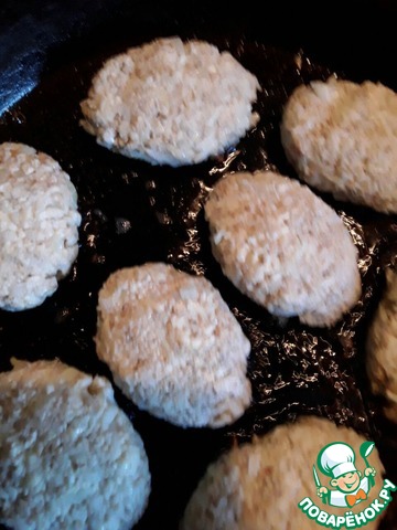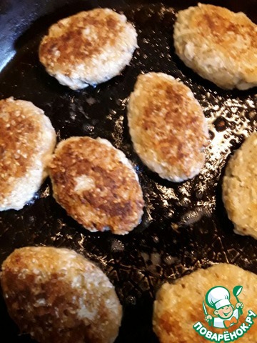 Придаём шарикам форму котлет и выкладываем на хорошо разогретую сковороду с растительным маслом.