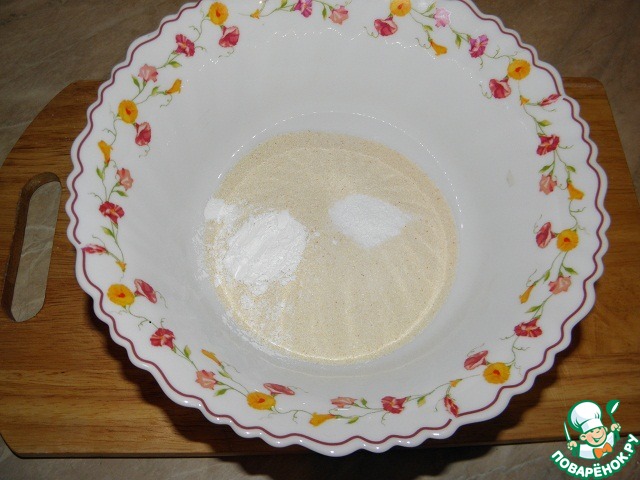 • Соединить манную крупу, соду, соль и разрыхлитель.