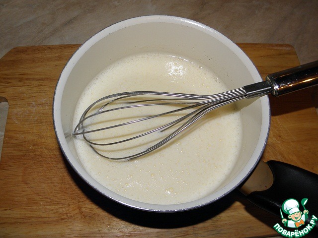 Огромное спасибо за внимание к рецепту! Я думаю тут и так все понятно, естественно не кипятить, чтоб он был чуть теплее теплого , для того чтобы манка лучше набухла (и конечно чтобы яйца не свернулись )