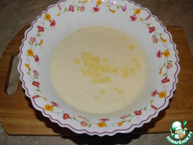 • Влить растопленное сливочное масло, перемешать и оставить в тепле для набухания минут на 30.