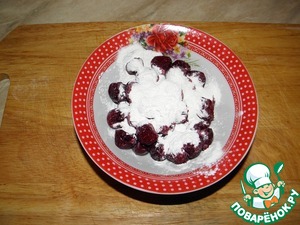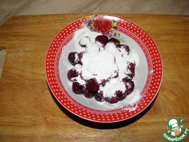 • Ягоды разморозить, обсушить, посыпать крахмалом.