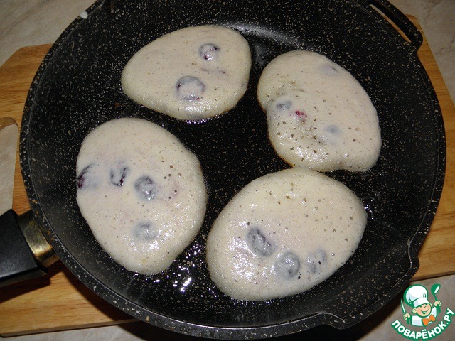 • Обжарить оладьи на слабом огне с двух сторон до подрумянивания и полной готовности.