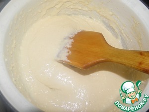 Опять ставим на паровую баню, как только начнется процесс плавления, а это минуты через 3, начинаем постоянно мешать деревянной лопаткой, пока масса не достигнет состояния плавленого сыра (желтая масса без комочков) Это займет где то 10-15минут