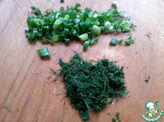 Укроп и зеленый лук мелко порезать.