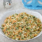 Добавить заправку к овощам, хорошо перемешать и дать настояться 1-1.5 часа.
