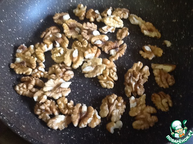 Одновременно поджарим грецкие орехи. Орешки можно взять на свой вкус. У автора вообще тыквенные семечки. :)