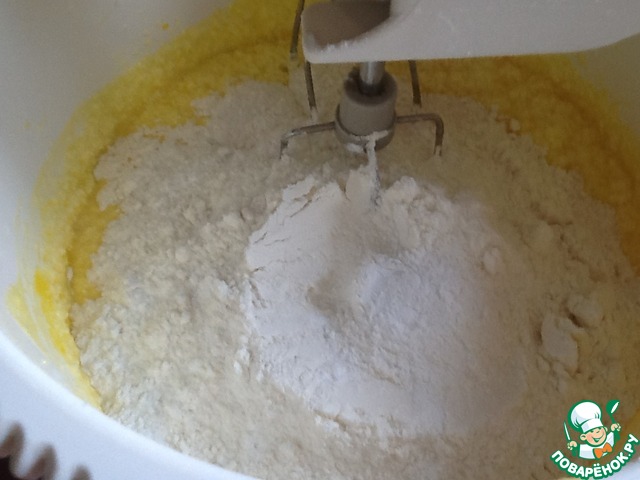 В последнюю очередь добавим муку и разрыхлитель. Тесто готово!
