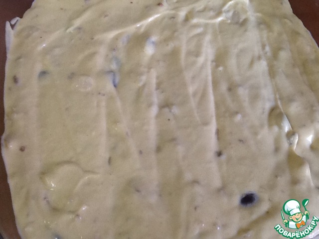 Выложим тесто в смазанную форму для выпечки. У меня 25*25 форма.
