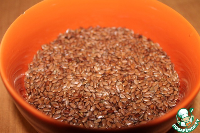 Семена льна заливаем теплой водой, чтобы она впиталась. Воды нужно столько, чтобы все семена намокли, сильно заливать не надо.