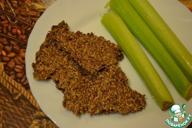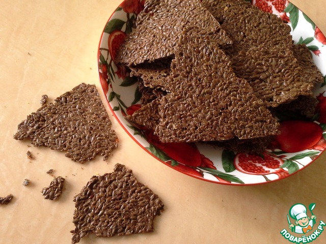 А вот и наши хлебцы! Хрустящие, необычные, очень полезные! Однако, похрустывая ими, помните, что семена льна нужно употреблять в разумном количестве - не больше 2-3 хлебцев за день.