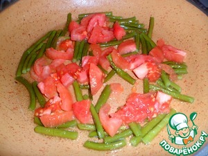Как будут готовы стрелки, добавить к ним нарезанные помидоры, прогреть с минуту.