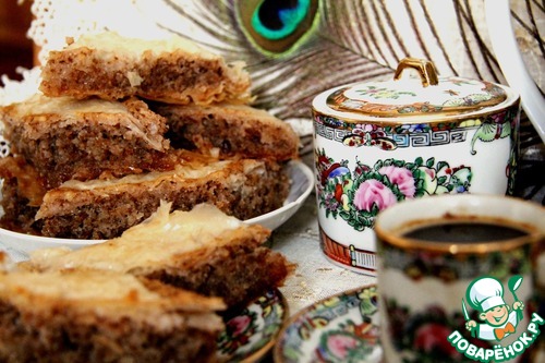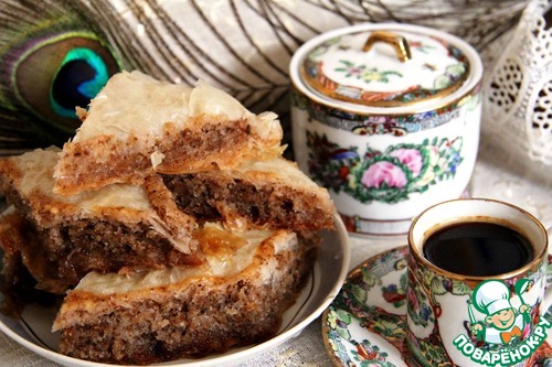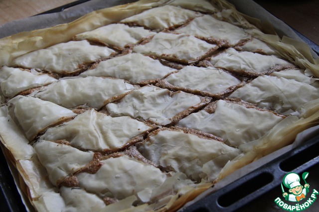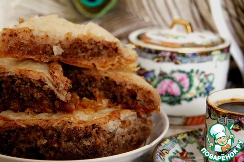 Название этому лакомству из теста фило и ореховой заливки я дала сама, т. к. не знаю, как правильно перевести настоящее название с турецкого. Почему пирог? Да потому, что выпечка получается мягкая и нежная между хрустящими листами теста фило.