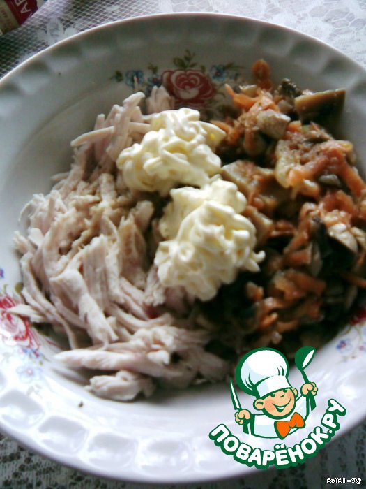 Рецепт «Салат из курицы, маринованных грибов и моркови»: