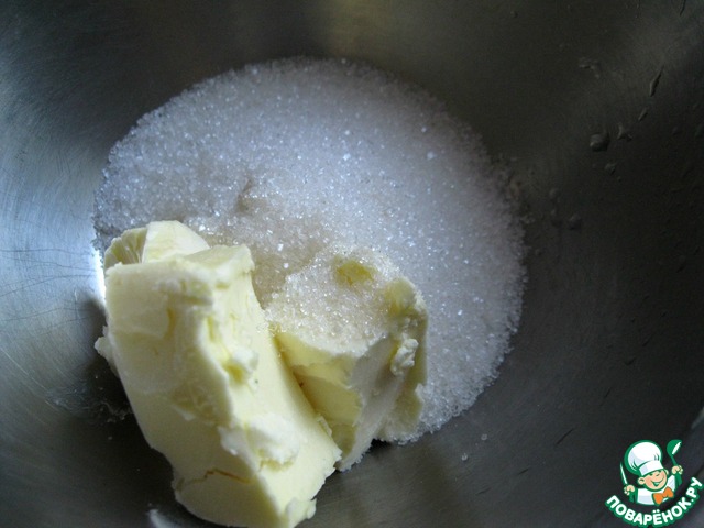 Взбить сахар с маслом до пышности. Добавить яйцо, взбить.