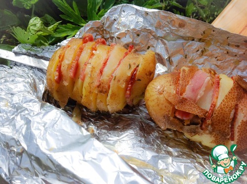 Картофель с грудинкой, запеченный в фольге
