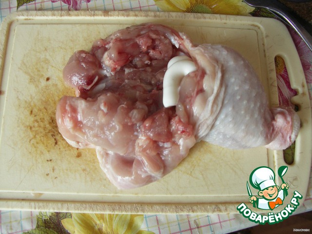 Тем временем принялась вырезать косточку из ножки. Думала будет сложно, а оказалось раз-два и готово :)