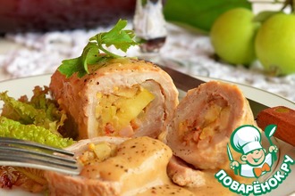 Затем грибочками с лучком и сырком начинила наш "чулочек".