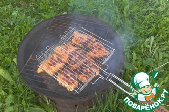 Запечь на решётке барбекю до готовности, по 5 минут с каждой стороны.