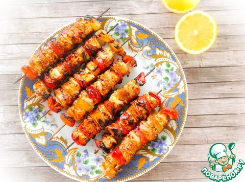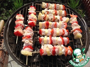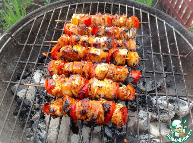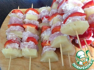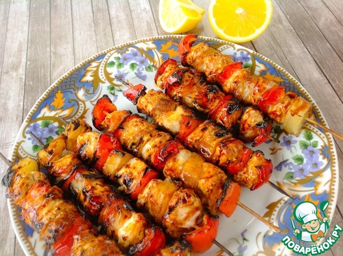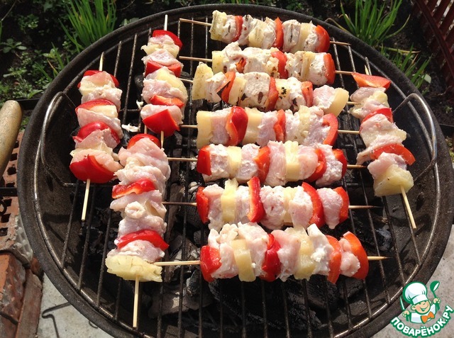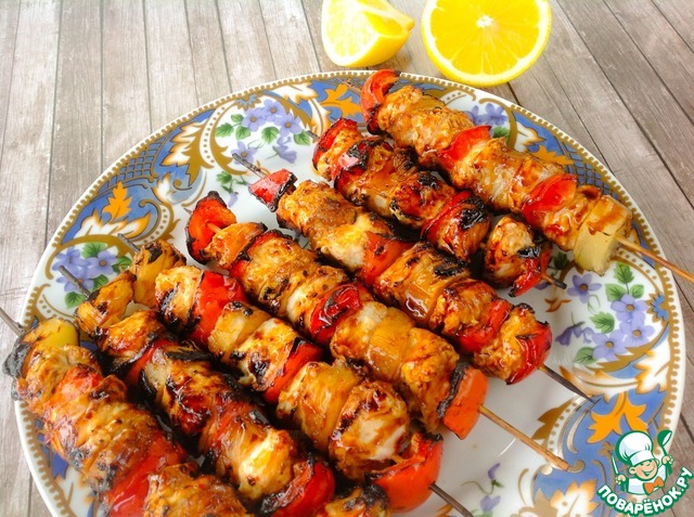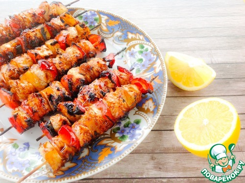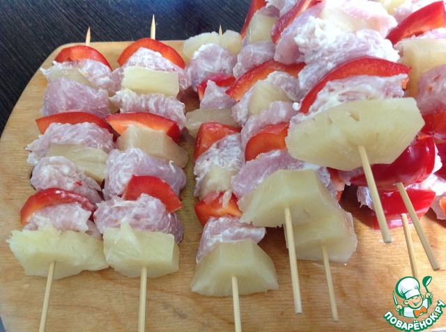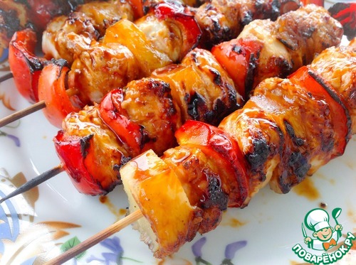Рецепт «Шашлычки из индейки с овощами и ананасом»: