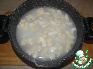 Когда капуста закипит влить молоко и дать ей покипеть всего минуты 3-4! Переваривать капусту ни в коем случае нельзя! Нам надо сделать ее более мягкой и только!