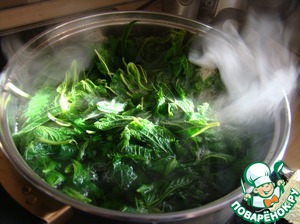 Крапиву залить водой, довести до кипения и варить 2 минуты, процедить. Сохранить 1/2 стакана отвара крапивы.