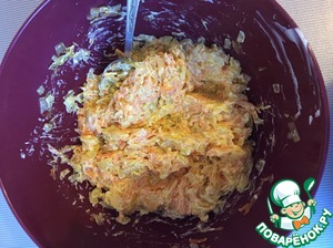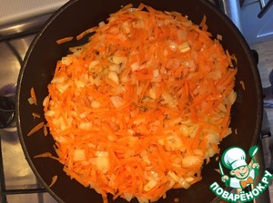 К нему добавляем натертую морковь, и все вместе обжариваем около 5 минут. Даем остынуть.