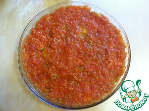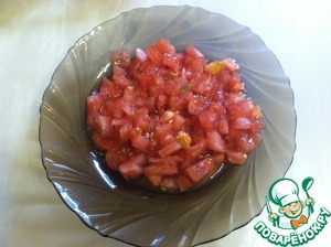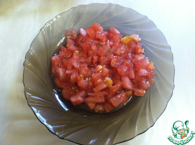 Снять с помидоров шкурку и порезать небольшими кубиками.