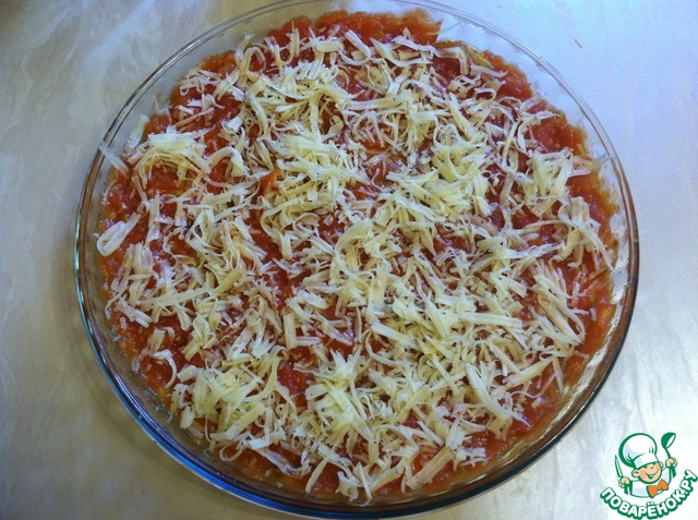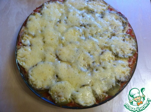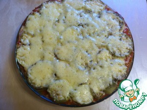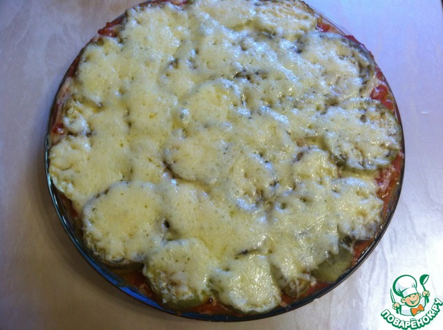 Самым верхним слоем должны стать баклажаны. Посыпаем сверху оставшимся сыром и отправляем в духовку. Запекаем 25 минут при температуре 180°C. -