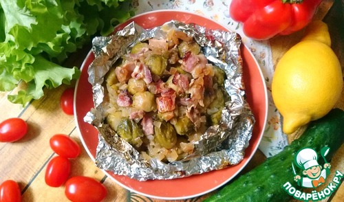 Рецепт «Брюссельская капуста-гриль с луком и беконом»: