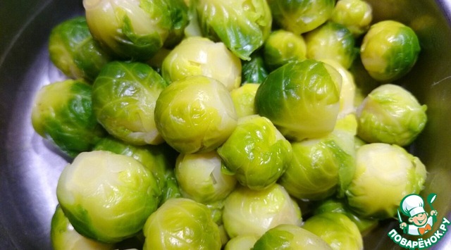 • Брюссельскую капусту следует отварить в кипящей подсоленной воде 5 минут, а затем воду слить.