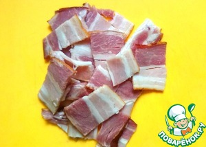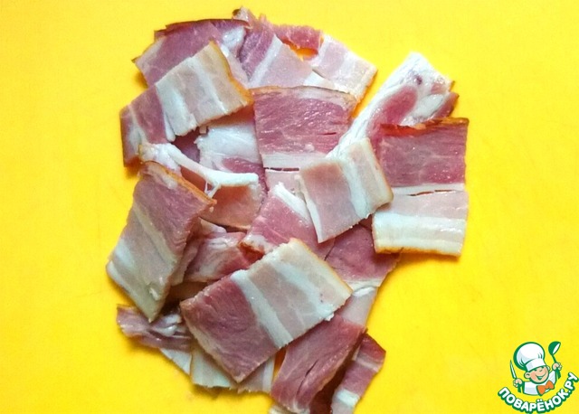 • Соединяем капусту, бекон и лук, перчим и поливаем соусом, затем помещаем в "конверт-тарелку".