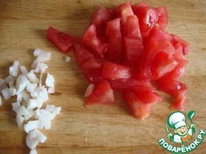 Помидор нарезать кубиками, чеснок, укроп измельчить.