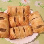 Сверху смазала просто водичкой. Можно, конечно, желтком. Выкладываем на противень на пекарскую бумагу. И отправляем в разогретую до 180 - 200 градусов духовку минут на 15-20 (зависит от духовки).