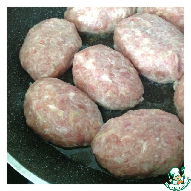 Из фарша сформировать котлеты и обжарить с двух сторон на растительном масле.