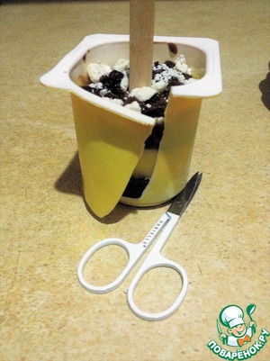 Утром, в приятном предвкушении, достаем замороженный йогурт из морозильника.
