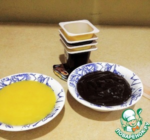 Слоями выкладываем банановый йогурт и сверху белый шоколад. -