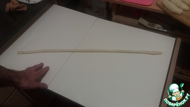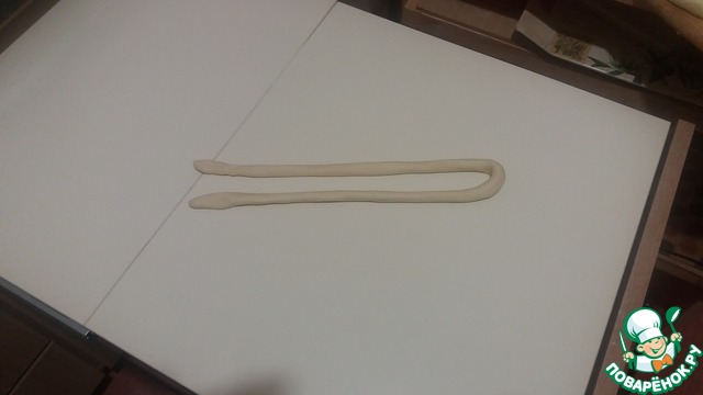 Раскатываем каждый кусочек в длинный жгут, толщиной около сантиметра.