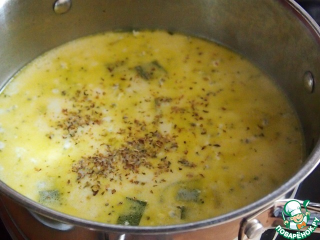 Добавить орегано и, помешивая, варить на маленьком огне до растворения сыра. Посолить и поперчить по вкусу.