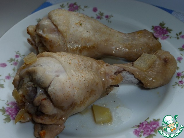 Куриные голени залить холодной водой, закипятить и проварить 2мин., воду слить, мясо промыть холодной водой.